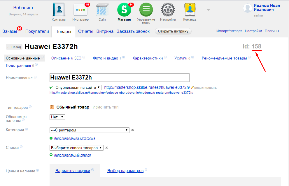 - Для товара: product-[ID товара]. Вместо [ID товара] - нужно ввести идентификатор товара, например: product-25. Идентификатор товара можно узнать на странице редактирования товара: