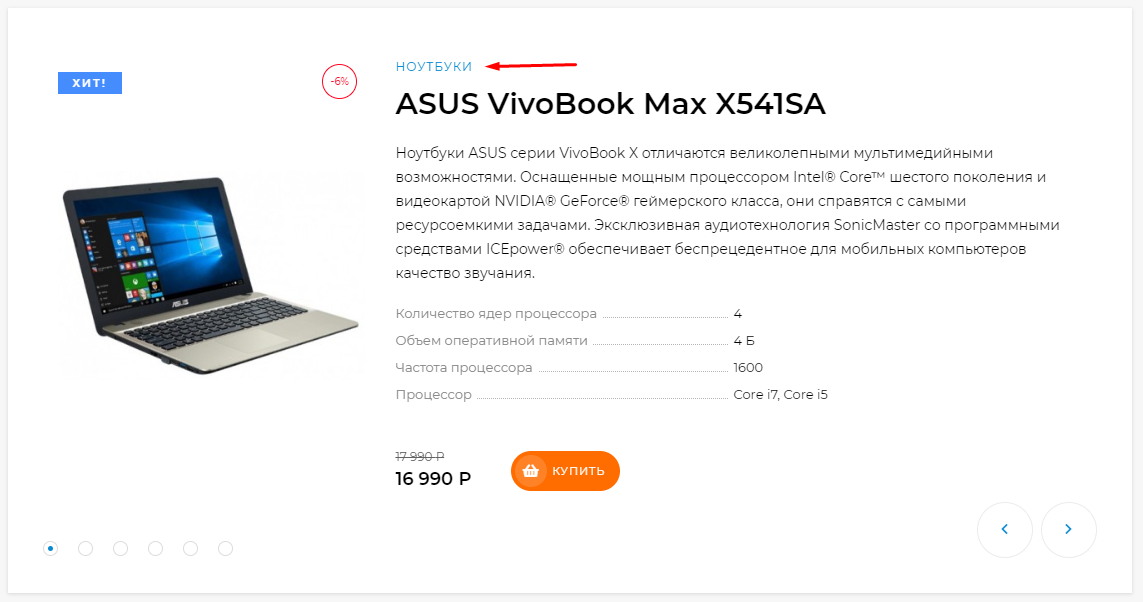 7. Для слайда с товаром можно вывести бирку над наименованием: