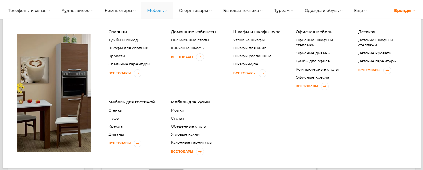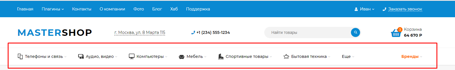 6. Для категорий есть возможность вывода баннера в выпадающем меню вида "С картинками", "Развернутое без иконок" или "Развернутое с иконками":