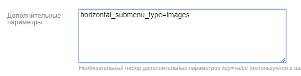 4. Есть возможность индивидуально для категории задать вид, используя поле Дополнительные параметры в настройках категории. С новой строки вставьте параметр horizontal_submenu_type=вид подменю: