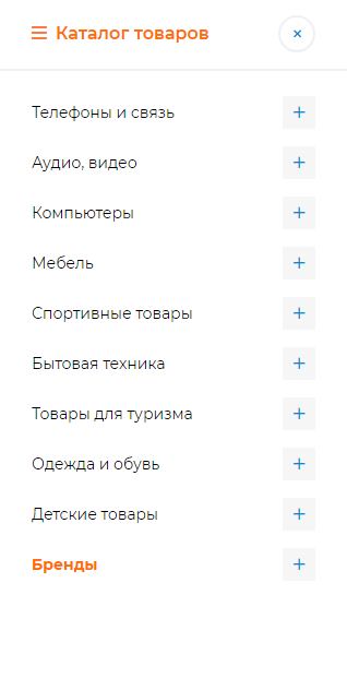4. Кнопка на мобильное главное меню имеет два варианта расположения: под шапкой сайта (опция "Вывести кнопку на меню каталога под шапкой"):