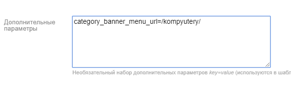 9. На баннер можно назначить ссылку, для этого в настройках категории вставьте с новой строки параметр category_banner_menu_url=ссылка в опцию "Дополнительные параметры":