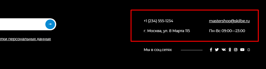 Контакты в подвале сайта