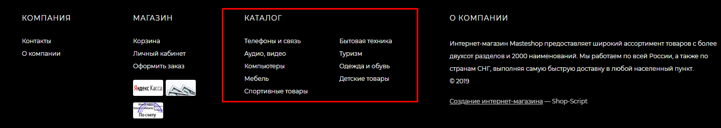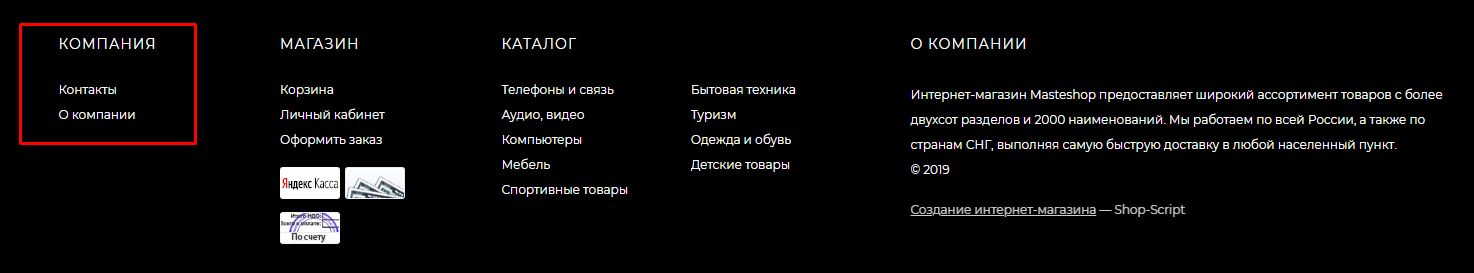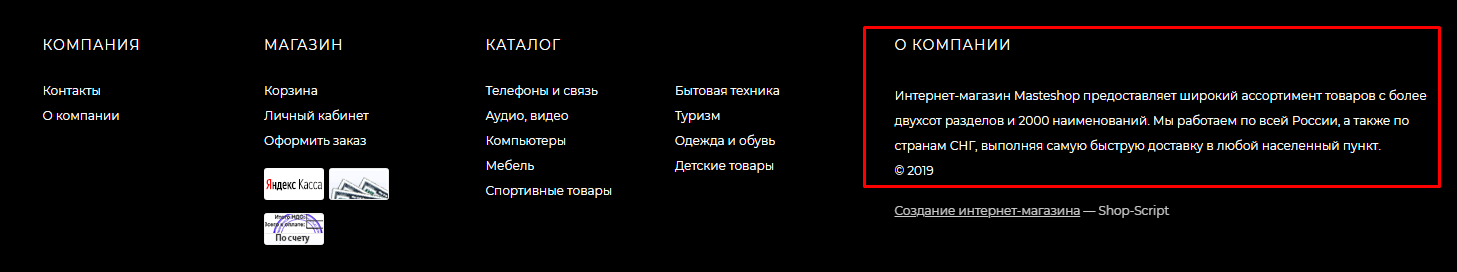 - ms.footer.footer_about - Раздел "О компании" в подвале сайта;