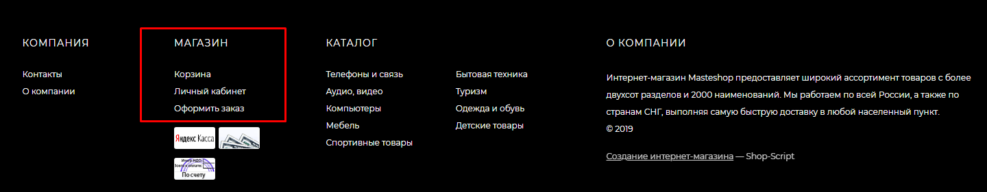 Блок#1 с ссылками в подвале