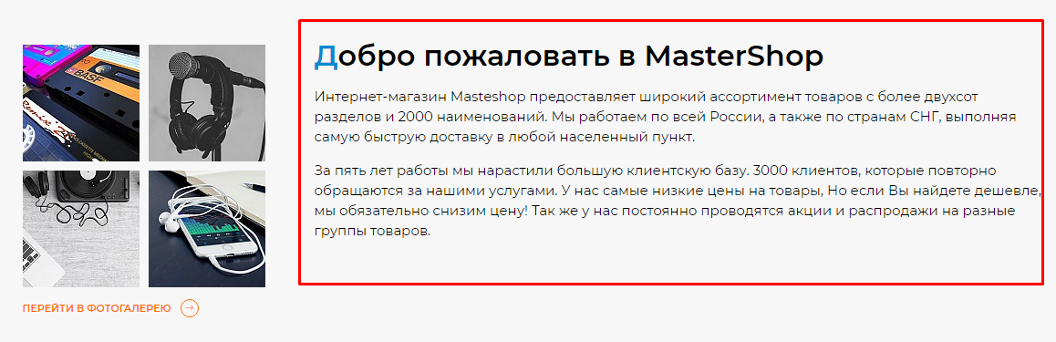 Приветственный текст на главной