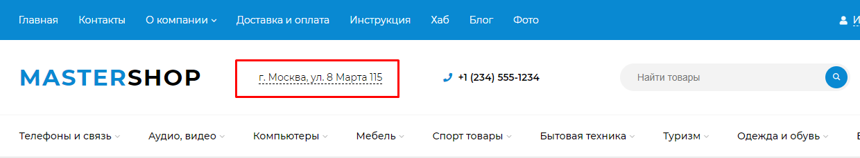 5. Например, необходимо отредактировать html-разметку адреса в шапке сайта.