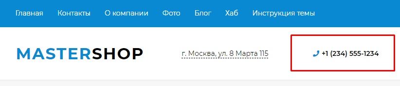 Телефон в шапке сайта