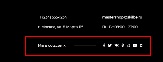 Опция для переключения блока - "Выводить соц.сети" в разделе Подвал сайта