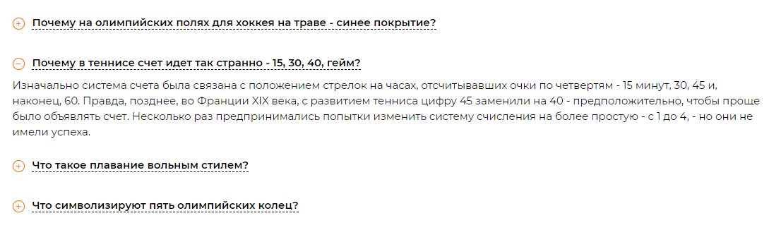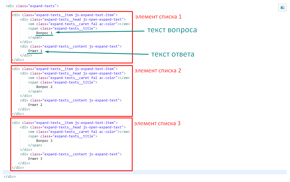 2. Продублируйте html-код контейнера .expand-texts__item на необходимое количество элементов списка и замените текст на нужное содержимое: