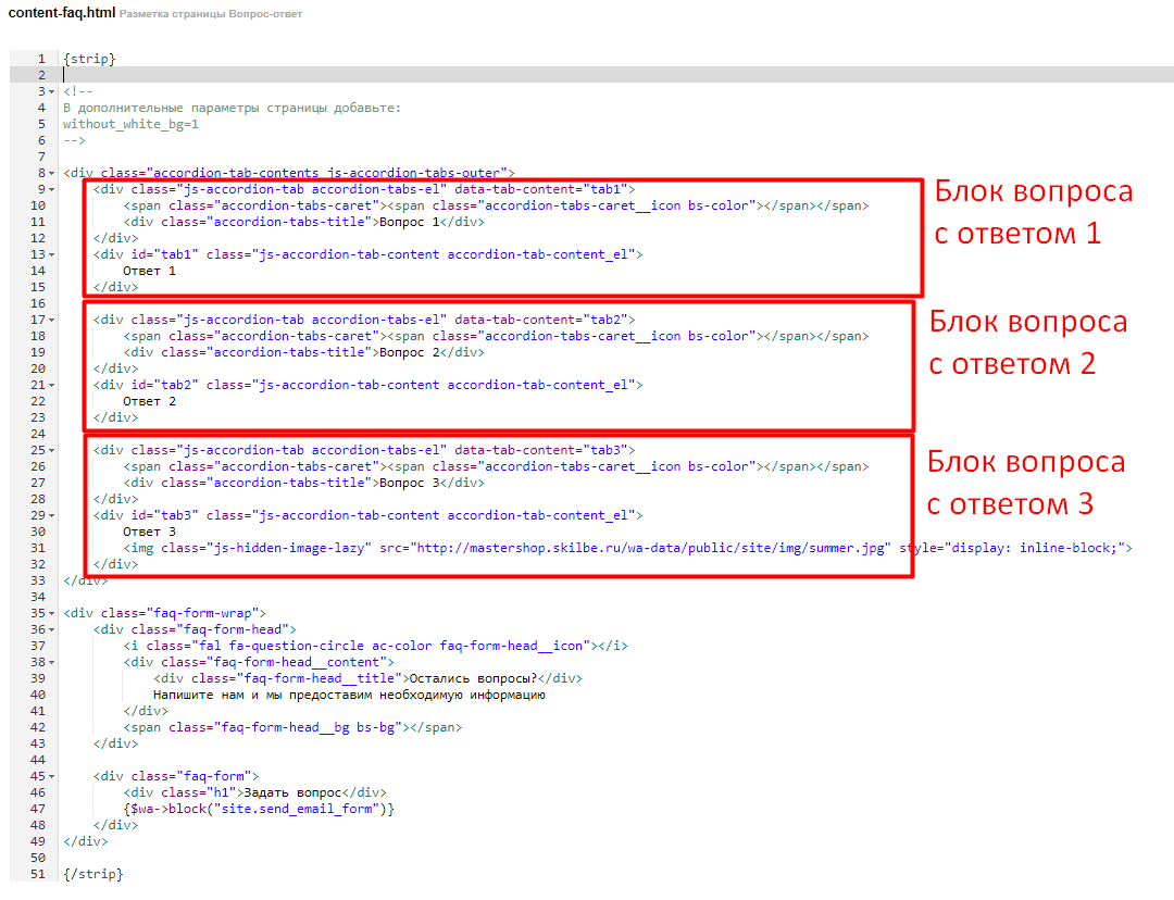 1) Для использования такого оформления скопируйте html-код в редактируемую страницу из шаблона content-faq.html, который находится в приложении Сайт - Дизайн - Шаблоны: