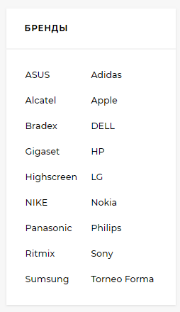 | Список товаров #2, привязанный к категории | См. скриншот блока "Список товаров #1, привязанный к категории" | category_products_list_2 | - Страница категории | Доп.информация |