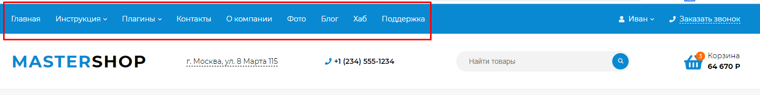 1. Опции для управления верхнем меню находятся в разделе "Верхнее меню" настроек темы дизайна: